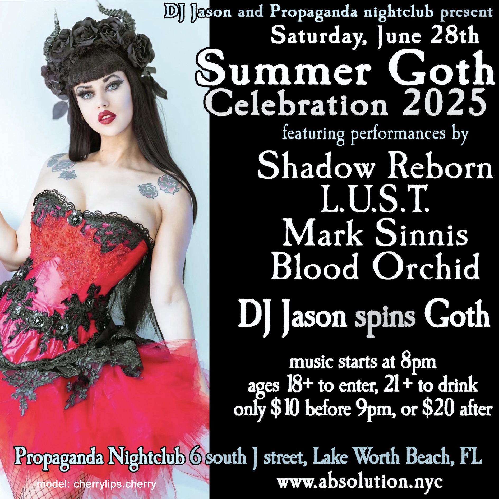 Mingo Indus has had a personal emergency that is preventing them from performing on June 28th, so Blood Orchid will be replacing them for this upcoming date. We wish Mingo well and hope to have them back again at a later time. Thanks to Blood Orchid for joining the Goth celebration. Hope to see everyone there for the show!