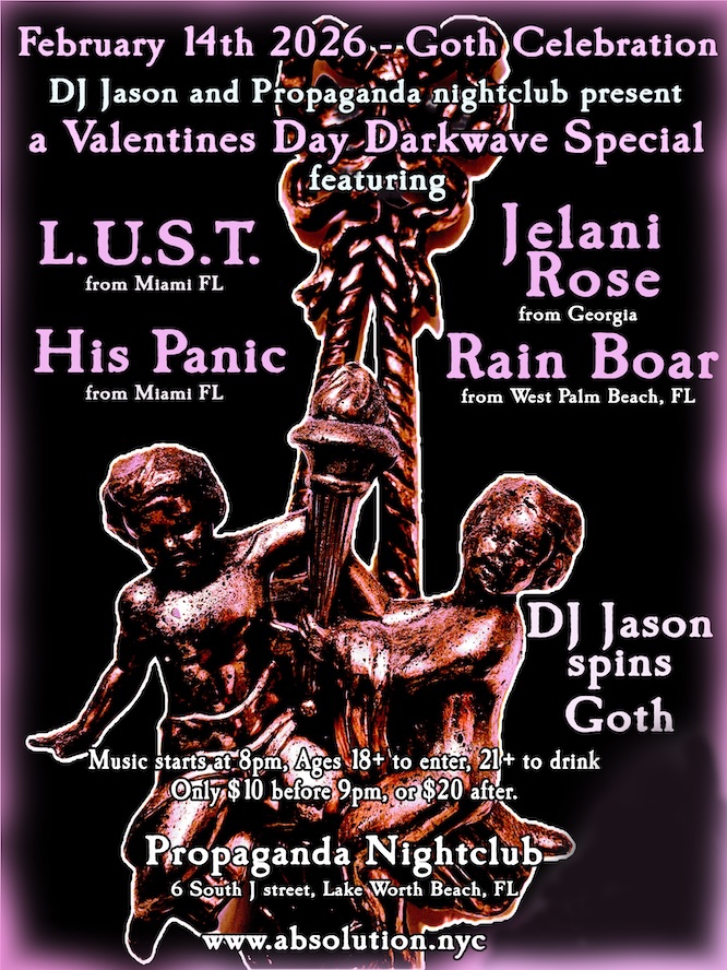 Update: Rain Boar (side project from Zaii of Violet Silhouette) will be playing on Saturday at the Valentine’s Day “Darkwave Special” Goth Celebration replacing Offerings who are unable to attend for personal reasons. Our best goes out to Offerings and we welcome Rain Boar onto the lineup!